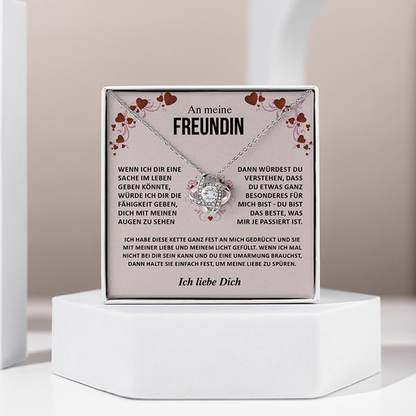 Schenken Sie ihr ein Geschenk, das für immer einen emotionalen Wert haben wird – eine elegante Halskette mit einer Liebesbotschaft, die speziell für sie entworfen wurde.