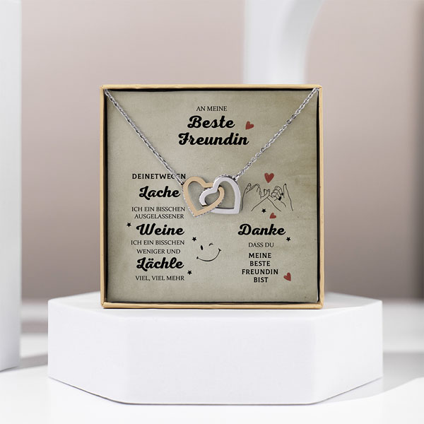 Eine Halskette mit ineinander verschlungenen Herzen steht für ewige Liebe und Verbundenheit. 💕