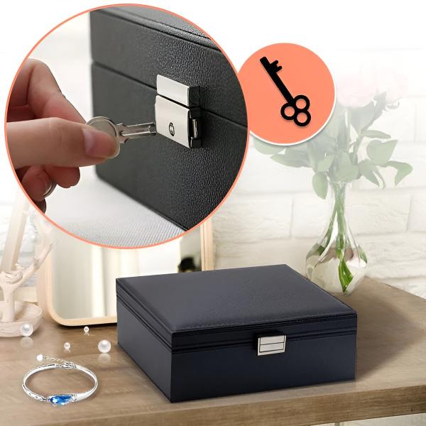 Perfekt für zu Hause oder auf Reisen, bietet er spezielle Fächer, um deine Accessoires zu schützen und aufzubewahren, damit sie immer in Reichweite sind!