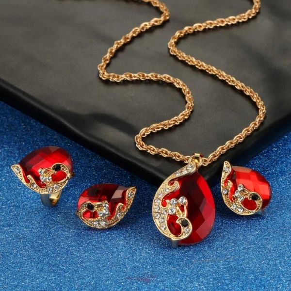 Entdecken Sie die perfekte Kombination aus Eleganz und Raffinesse mit einem Set bestehend aus Uhr, Armband, Ohrringen, Ring und Halskette in bezauberndem Rot. Dieses wunderschöne Set ist für Frauen gedacht, die in jedem Moment auffallen und glänzen möchten.